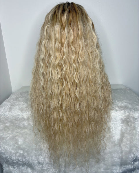 Colour: natural blonde with light blonde highlights.
