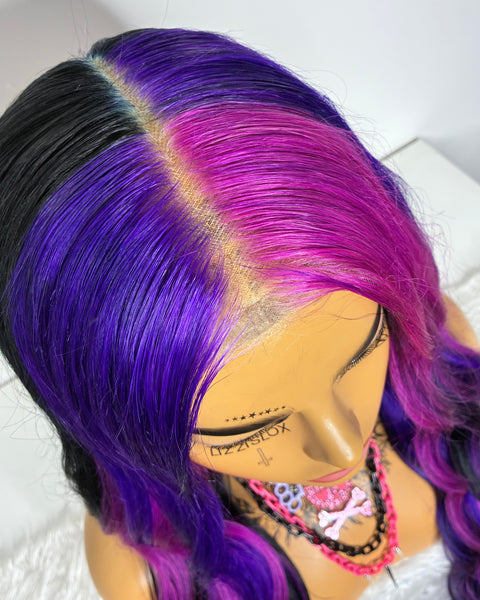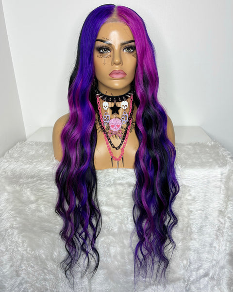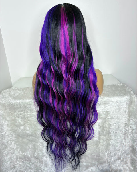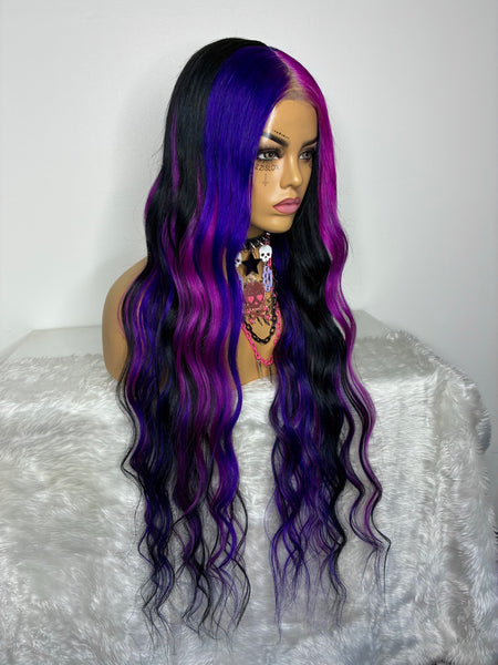Colour: black, deep pink & purple chunky highlights