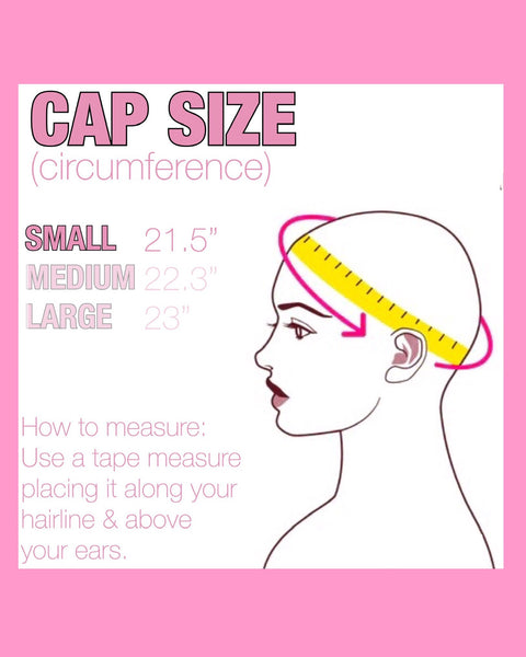 ☆ Small cap size (approx 21” circumference), stretchy with adjustable elastic straps.