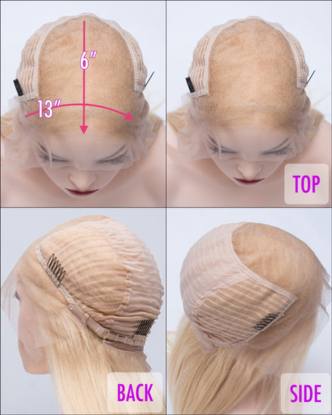 Cap Size: MEDIUM - cap measurements are in the photos. Please allow for slight discrepancies in measurements as they are made by hand. All wigs are quite stretchy and come with an elastic band at the back that can be used to tighten the wig if needed.